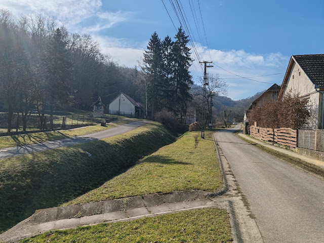 Pénteki napot választottunk a túrának,mégpedig a gyalázatos tömegközlekedés miatt.Hétvégén ugyanis elég nehézkes elérni a Baranya megyei Vékényt...Így is,bár viszonylag sima utunk volt,de majd fél tízre érkeztünk meg a csöppnyi mecseki faluba.Harmadszor indult innen túránk a helyi haranglábtól,de az első két alkalomkor a Csepegő-árokba mentünk.Most vettük az irányt a Zsidó-pokol felé.Bár a pokolba nem vezet jelzett turistaút mégis sokkal könnyebb az elérése mint a közeli Csepegő-ároknak.Egyszerűen nem volt más dolgunk mint végigmenni Vékény fő utcáján,az ugyanis egyenesen belevitt az ismeretlen szurdokba!